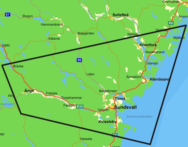 Eventets cacher kommer vara spridd över ett ganska stort geografiskt område.Här nedan kan du på en karta se ungefär hur stort.